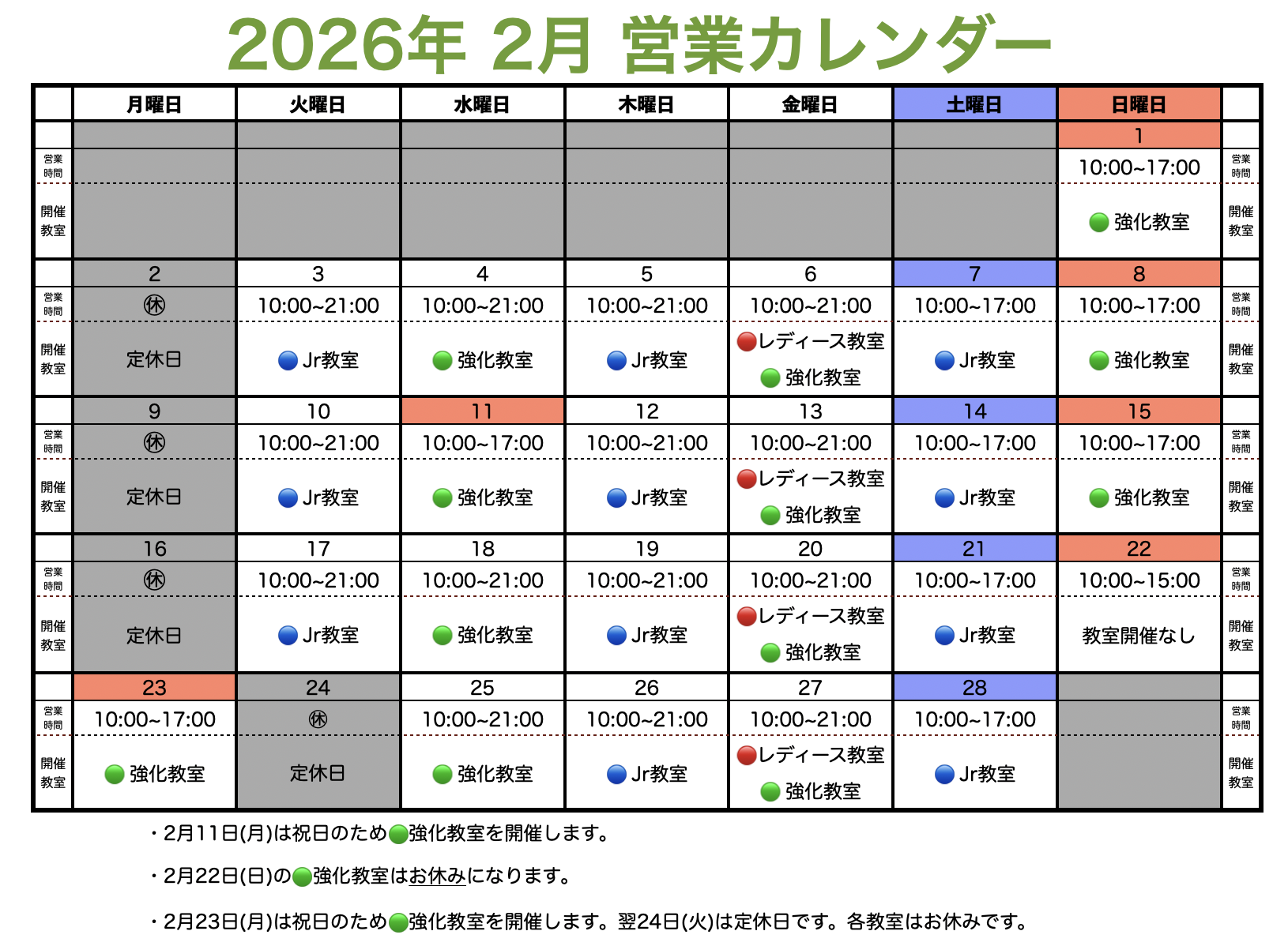 ◾️2月の営業カレンダーを公開しました