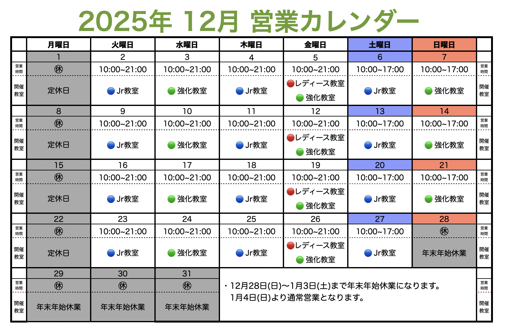 ◾️11/27 12月の営業カレンダーを公開しました。