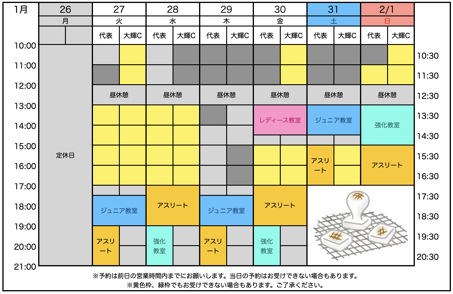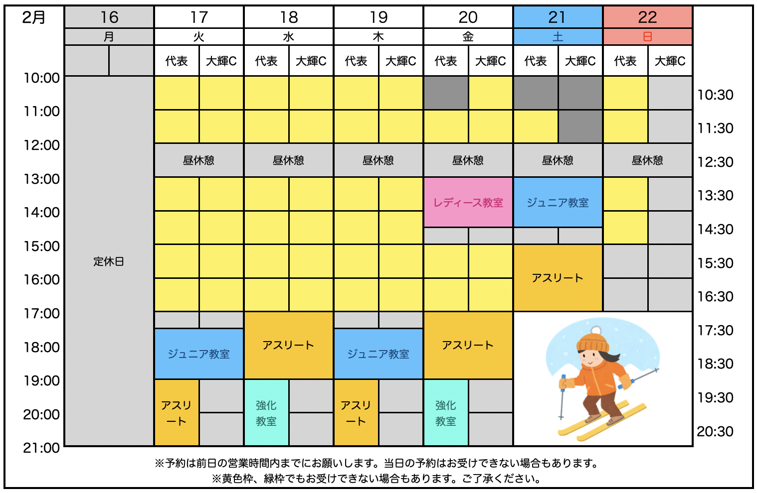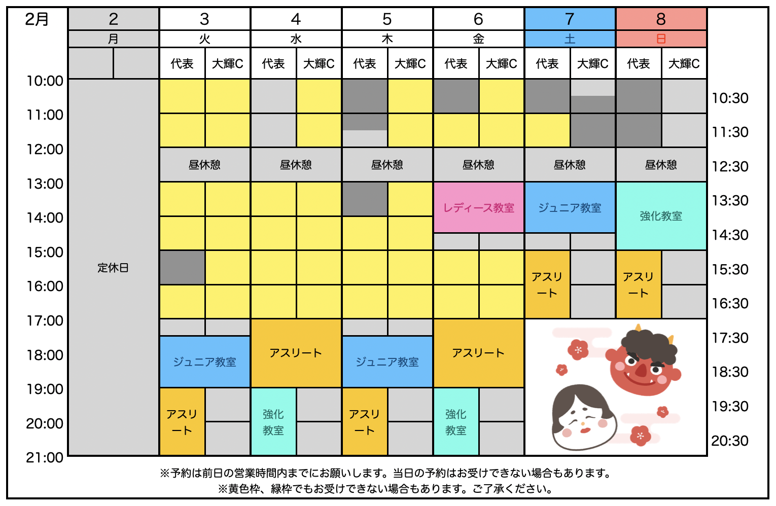 ◾️1/20 2月の個人レッスン予約状況を公開しました。