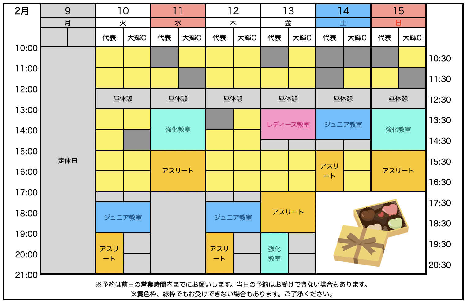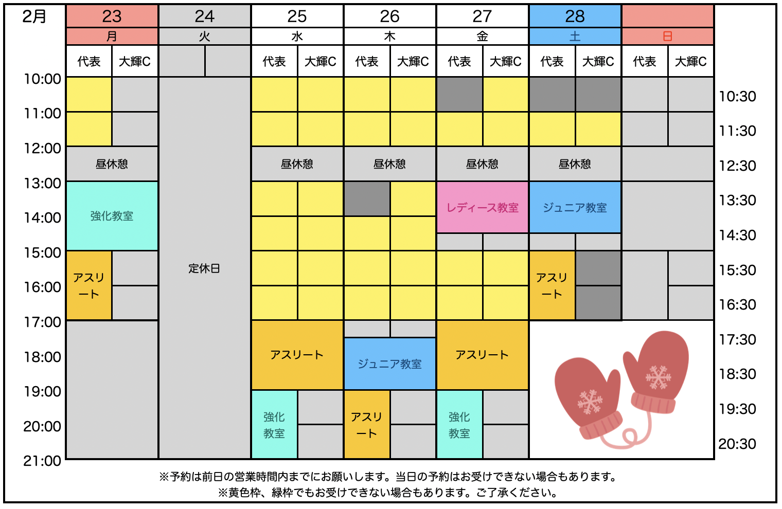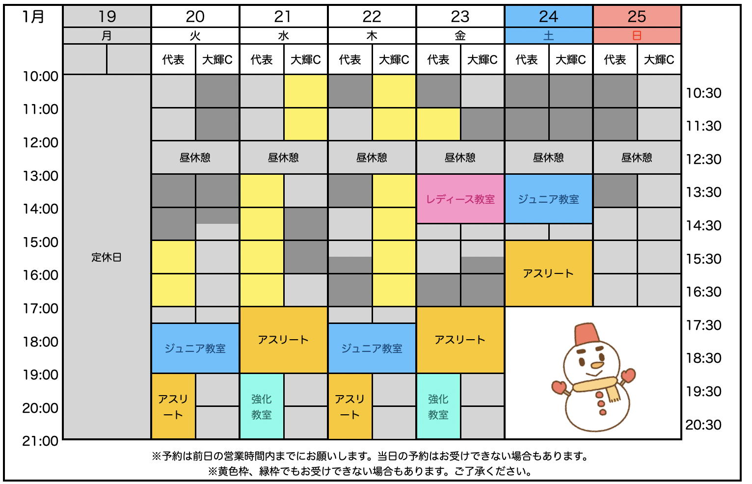 ◾️1/20 2月の個人レッスン予約状況を公開しました。