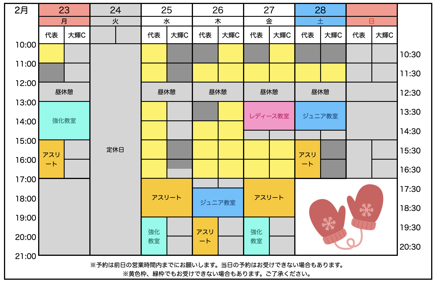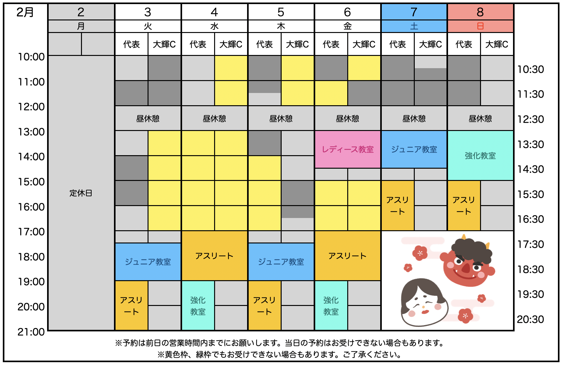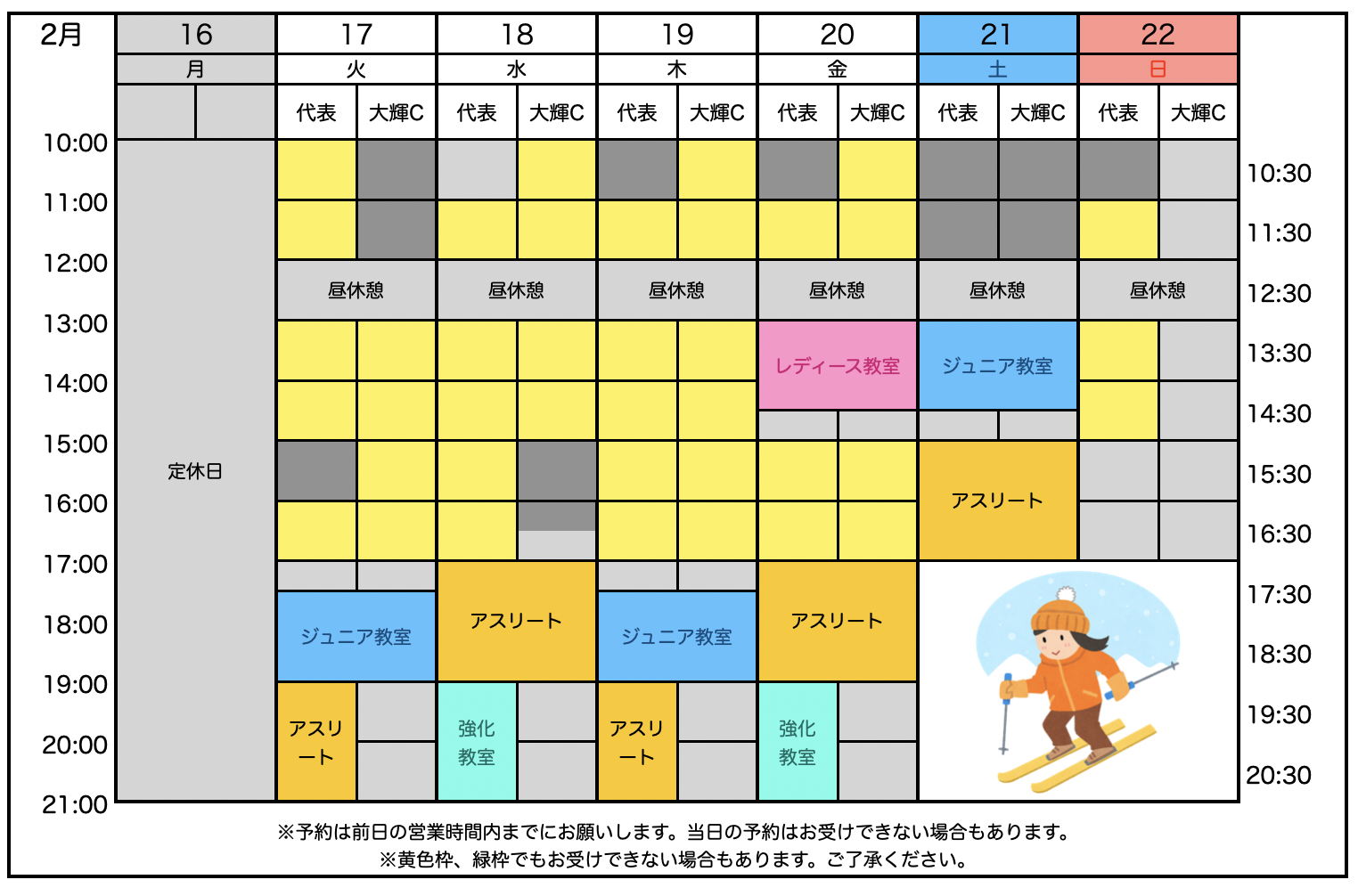 ◾️2/6 20:00 個人レッスン予約状況を更新しました。